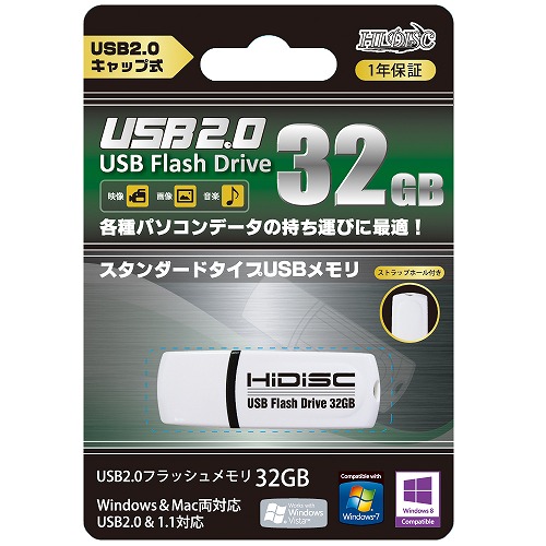 USB2.0 USBフラッシュドライブ キャップ式 HIDISC USB 2.0 フラッシュドライブ 32GB 白 キャップ式 2016年4月7日 2018年3月28日 型番HDUF102C32G2J …