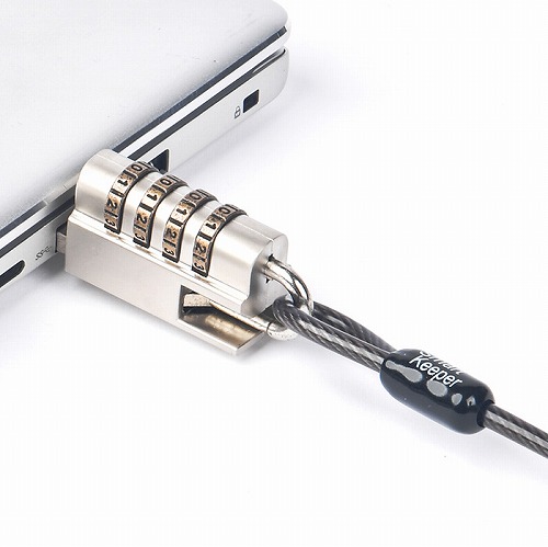 | 備考 | この製品は、ノートパソコンの盗難防止のためのロック製品です。 ロック用の穴がないスリム対応ノートパソコンにも適用できるよう、USBポート(TYPE-Aポート)に差し込み、ロックする方法を採用しています。 そのため、USBポートを一つ占有します。 ロックは4桁数字のダイヤル式なので、解除キーを紛失して解除できなくなるなどの問題は発生しません。 |