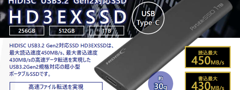 関連ページ: HIDISC U … 続きを読む HIDISC USB3.2 Gen2 Type-C対応データ/録画用 ポータブルSSD