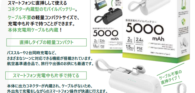 関連ページ: HIDISC S … 続きを読む HIDISC 直挿タイプ 5000mAh モバイルバッテリー HD2-MBTCD5000WH/BK