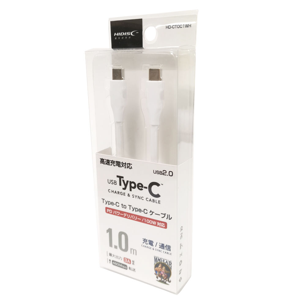 1m 1m USB Type-C ケーブル ブラック HIDISC USB2.0 高速データ通信/充電 USBType-C to Type-C ケーブル 型番 HD-CTOC1WH JANコード 4984279642467規格 USB2.0 Type-C – Type-C 最大出力 3A 最大転送速度 480Mbps 最大W数 100W 長さ1.0m 備考 オンラインストアで購入 関連ページ: HIDISC USB Type-Cケーブル 1m ブラック最大3.0A充電可能 過充電保護機能付き HD-TCC1BK HIDISC USB3.1 高速データ通信&充電 USBType-C to Type-C ケーブル HIDISC PD18W, 最大3A出力 USB Type-C to Lightning 充電/通信ケーブル 【Apple認証品】HIDISC 1本で3役 Lightning, microUSB, Type-Cケーブル 1m ホワイト高速充電2.4A対応 HD-3IN1MLC1WH