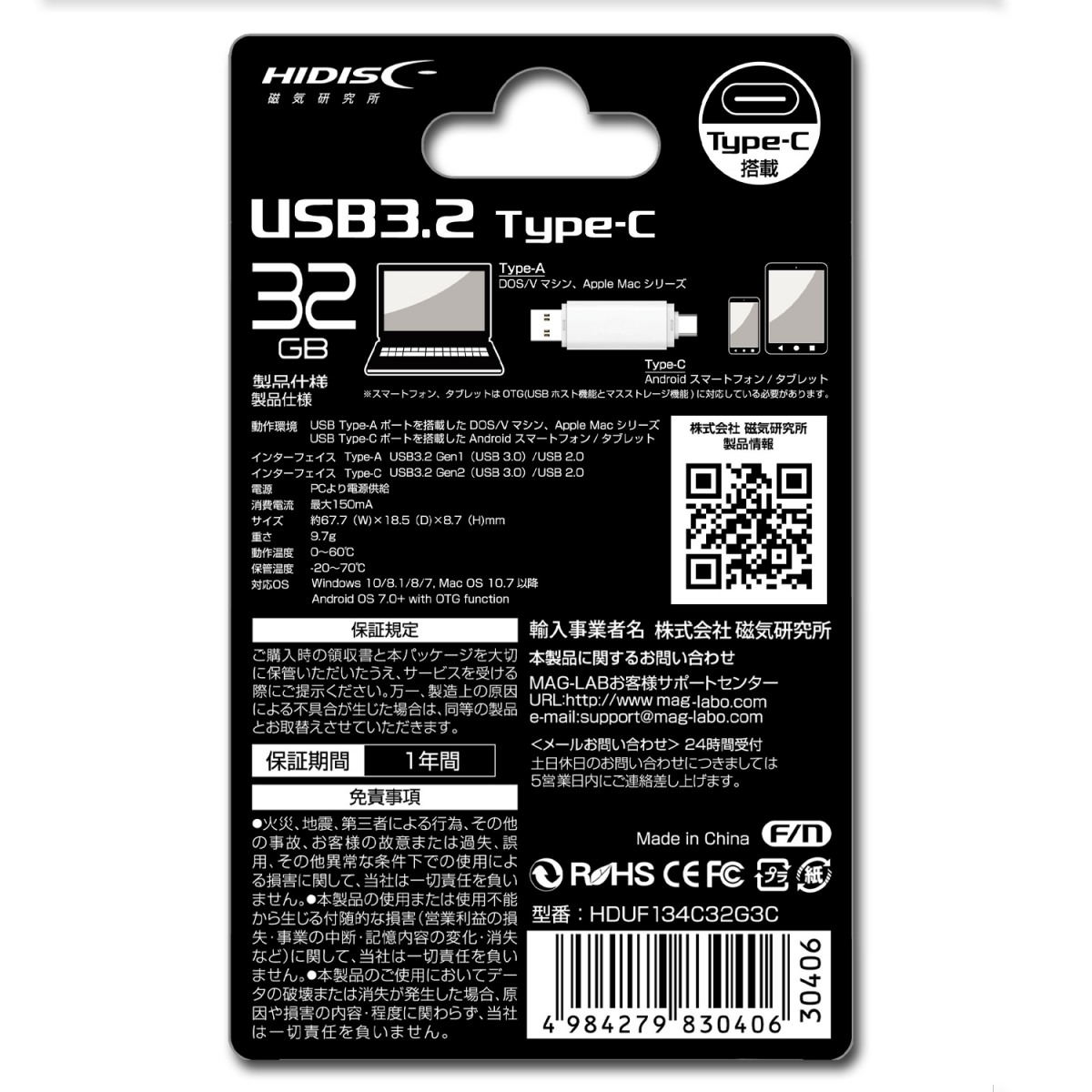 | 商品名 | HIDISC USB3.2 Gen2 Type-C メモリ Type-Aコネクタ搭載 |