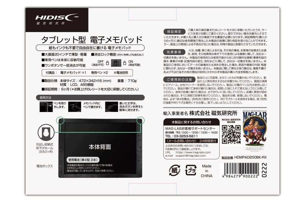 | 商品名 | HIDISC 20インチ電子メモパッド*電池別売 |
