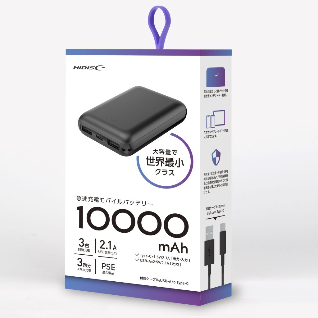 | 特徴 | 〇USB Type-C入出力対応 〇3台同時充電可能 〇保護回路(ショート、過充電、過放電、過電流、加熱防止) ○PSE適合製品 〇付属品:充電用Type-Cケーブル(約26cm) ○コンパクトなパッケージサイズ |