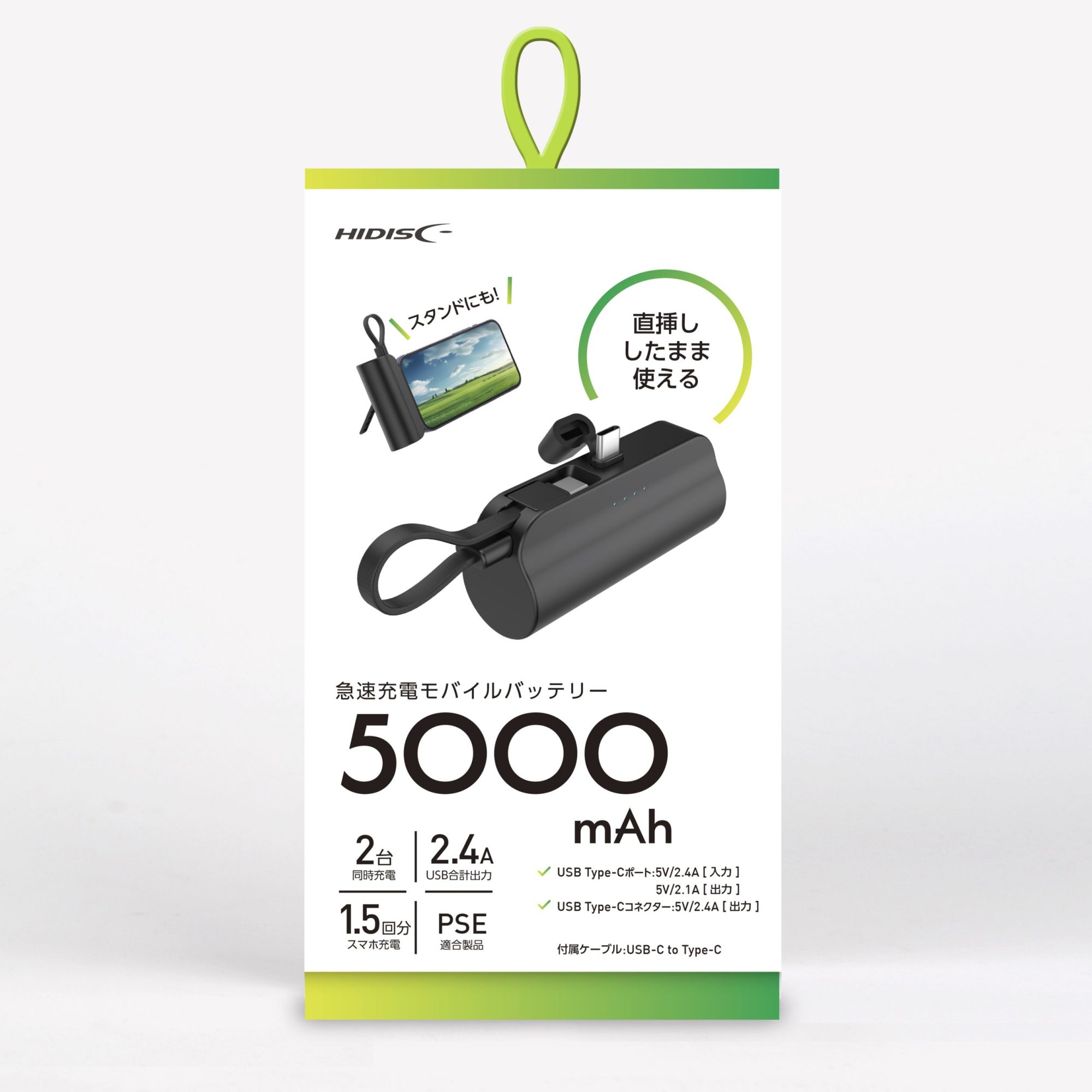 | 商品名 | HIDISC 直挿タイプ 5000mAh モバイルバッテリー HD2-MBTCD5000BK |
