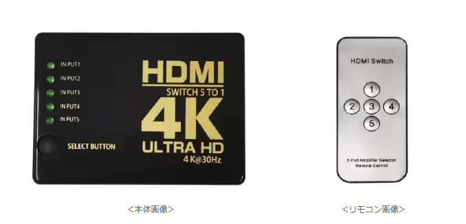 最大5台のHDMI機器を手元で切り替え!4K対応の美しい映像を楽しめる! ゲオ限定『HDMIセレクター リモコン付き5入力1出力』を販売