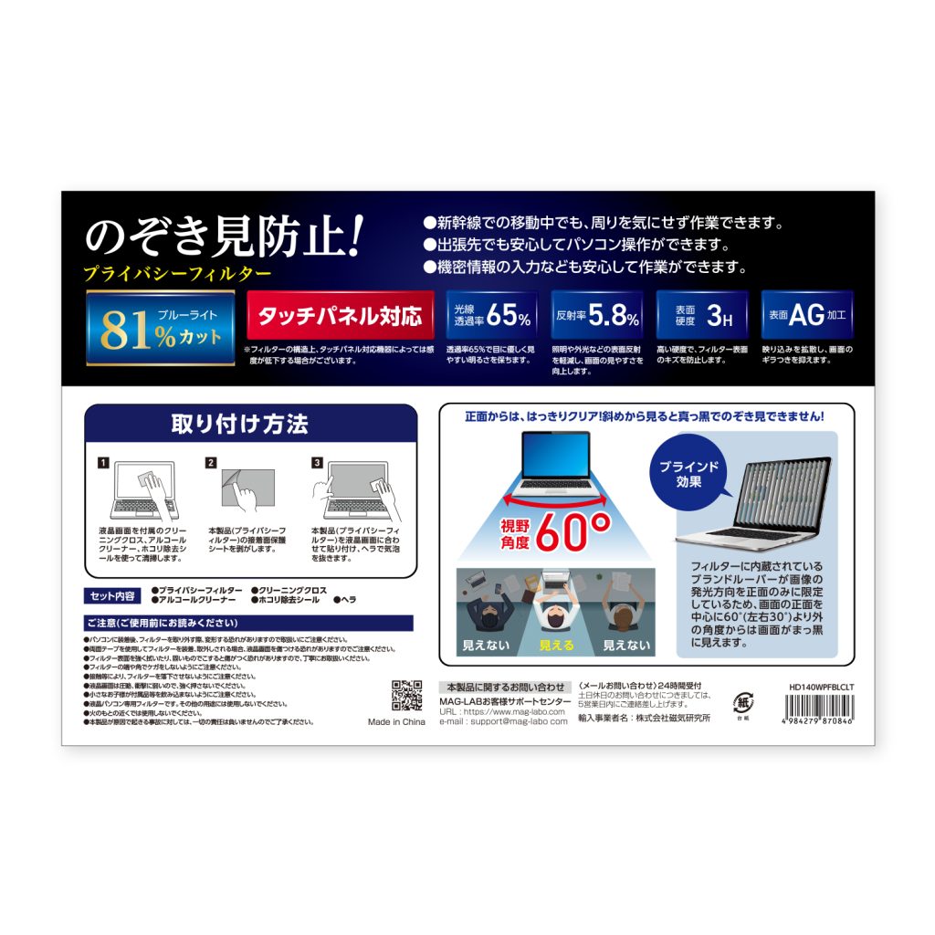 のぞき見防止 ブルーライトカット 保護フィルム HIDISC のぞき見防止! プライバシーフィルター 14W HD140WPFBLCLT 商品名HIDISC のぞき見防止! プライバシーフィルター 14W 型番 HD140WPFBLCLT JANコード 4984279870846 規格 のぞき見防止プライバシーフィルターサイズ14w W310 x H174mm, 比率 16:9 機能 可視光線透過率: 65%±5%反射率: 5.8%表面硬度: 3H表面加工: AG加工備考インナーカートン 10枚, アウターカートン50枚 オンラインストアで購入 関連ページ: HIDISC のぞき見防止! プライバシーフィルター 11.6W HD116WPFBLCLT HIDISC のぞき見防止! プライバシーフィルター 12.5W HD125WPFBLCLT HIDISC のぞき見防止! プライバシーフィルター 15.6W HD156WPFBLCLT HIDISC 液晶保護フィルム ブルーライトカット 23インチワイド HD230WAREBLCT