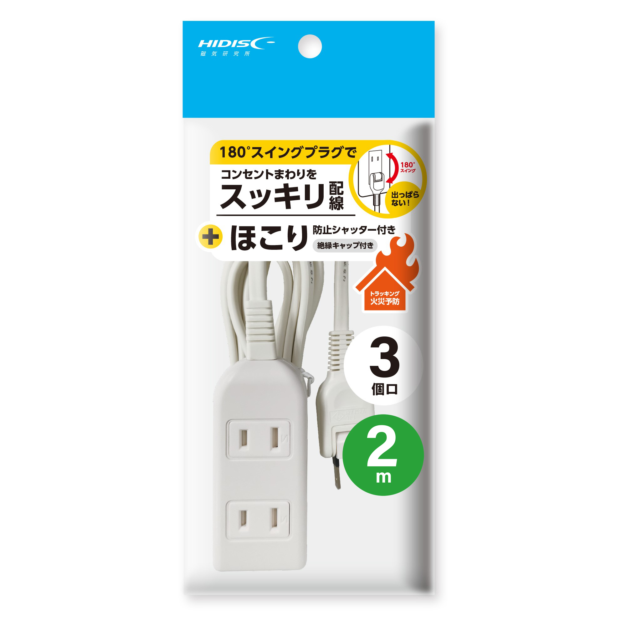 1m 節電タップ 電源タップ 180°スイングプラグでコンセントまわりをスッキリ配線 HIDISC ほこり防止シャッター付電源タップ 3個口 2m 商品名180°スイングプラグでコンセントまわりをスッキリ配線 HIDISC ほこり防止シャッター付電源タップ 3個口 2m 型番 HD-T03A2MWH JANコード 4984279871027定格AC 125V 15A最大合計1500Wコード長約2m 備考 ・180度スイングプラグ・ホコリ防止シャッター付き・トラッキング防災予防絶縁キャップ オンラインストアで購入 関連ページ: 180°スイングプラグでコンセントまわりをスッキリ配線 HIDISC ほこり防止シャッター付電源タップ 3個口 1m 180°スイングプラグでコンセントまわりをスッキリ配線 HIDISC ほこり防止シャッター付電源タップ 3個口 1m ブラック 一括集中スイッチ付 節電タップ 6個口 1.5m 180°スイングプラグでコンセントまわりをスッキリ配線 HIDISC ほこり防止シャッター付電源タップ 3個口 3m