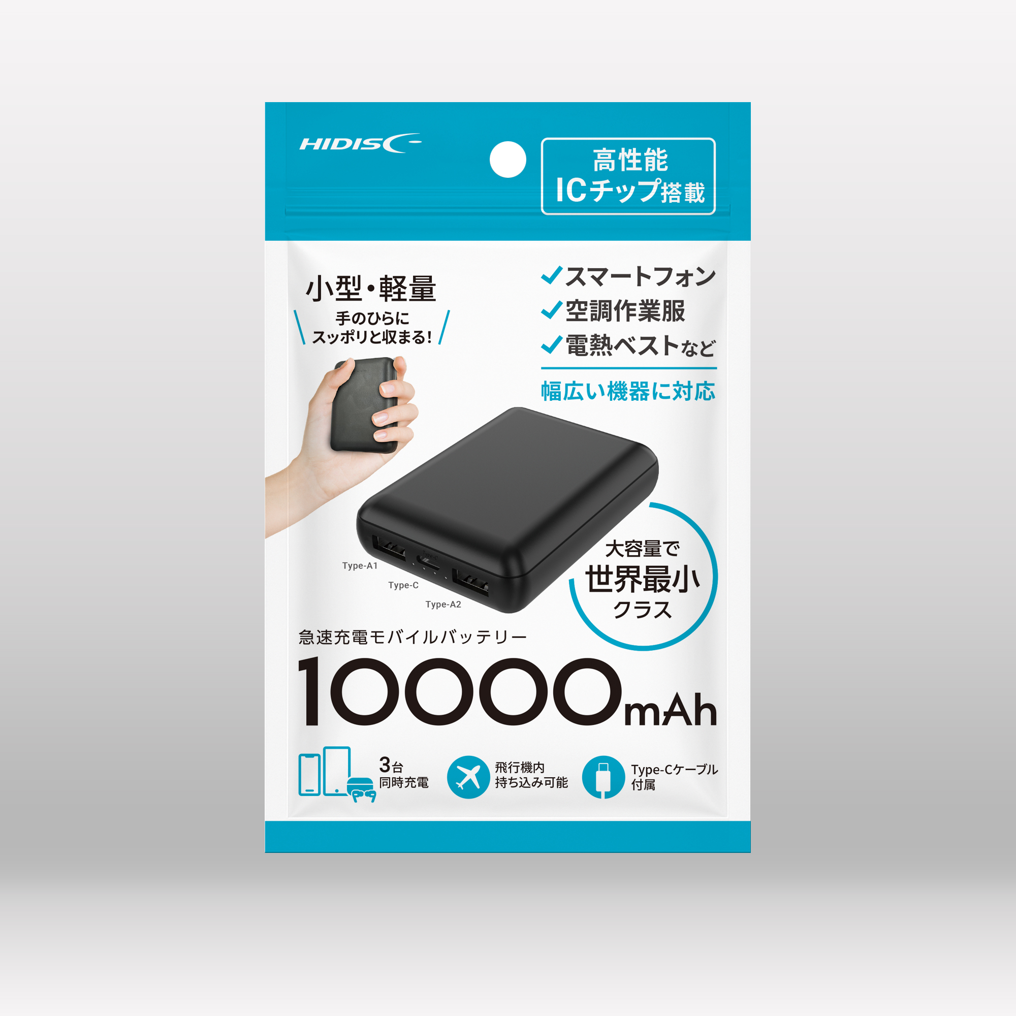| 商品名 | HIDISC 世界最小クラス 急速充電モバイルバッテリー 10000mAh ブラック |