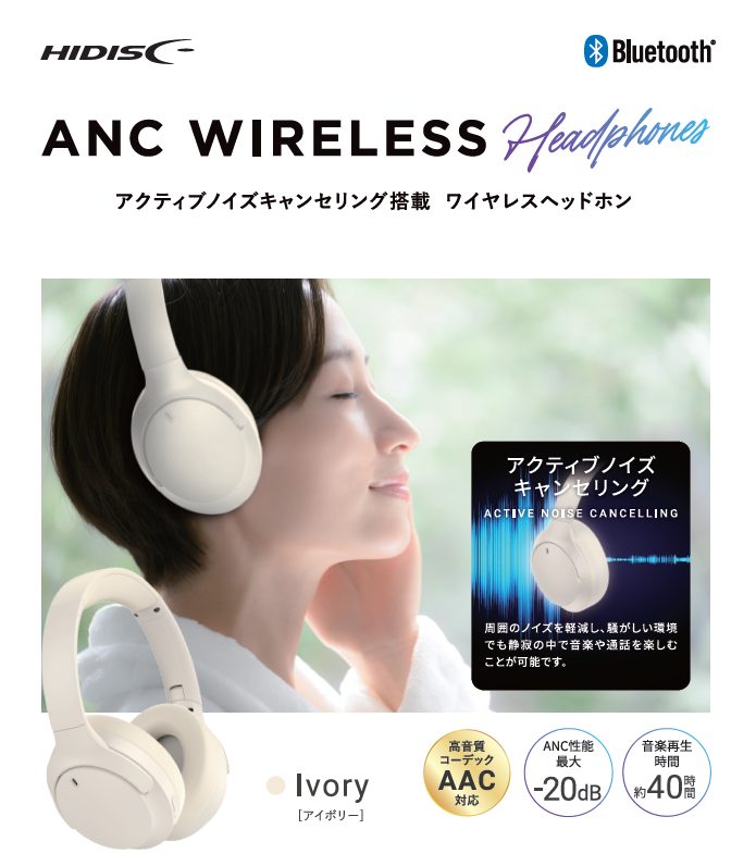 | 商品名 | HIDISC アクティブノイズキャンセリング搭載 ワイヤレスヘッドホン |