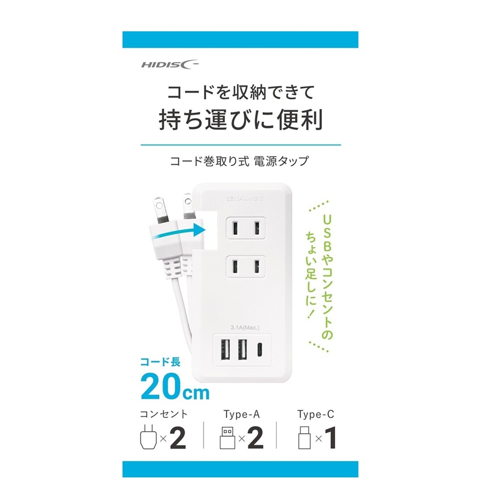 | 商品名 | HIDISC コードを収納できて持ち運びに便利 コード巻取り式 電源タップ |