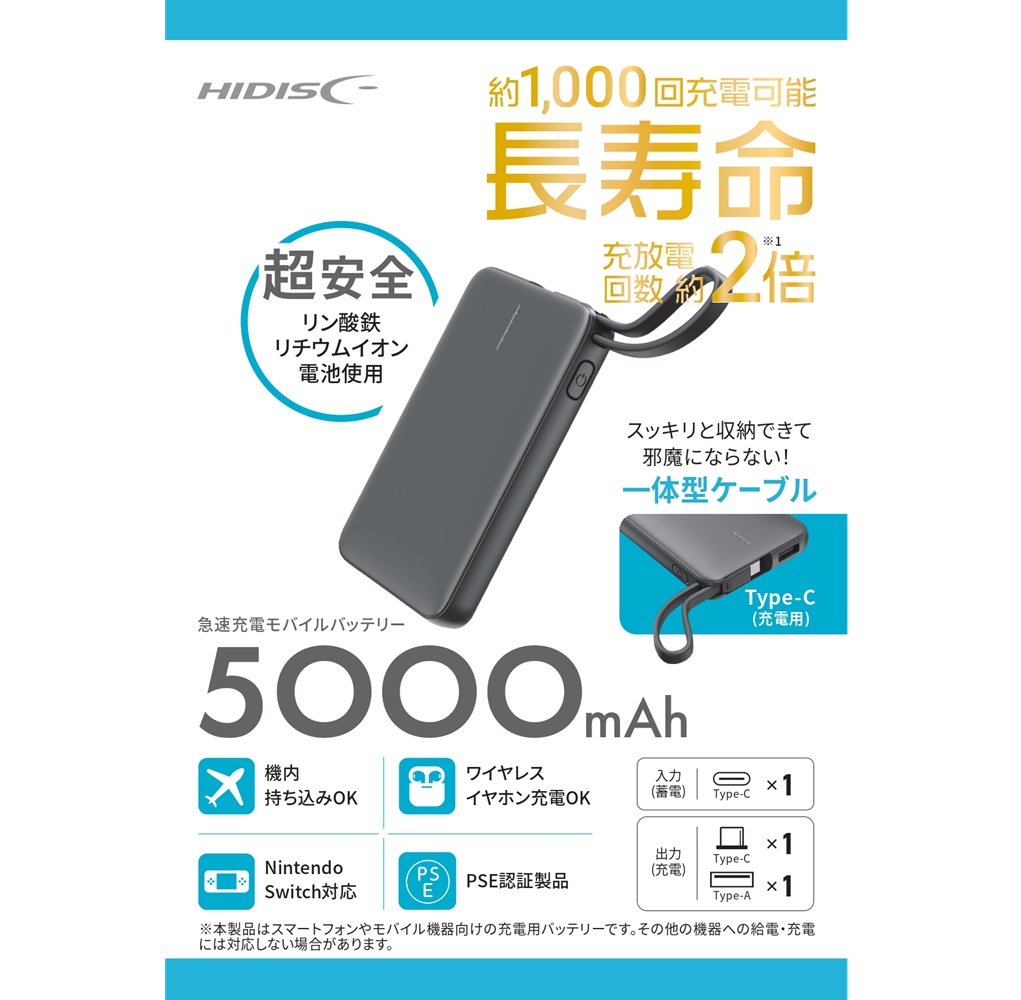 | 商品名 | HIDISC 長寿命+超安全 準固体電池モバイルバッテリー |