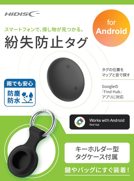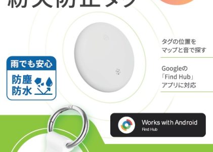 | 特長 | ●スマホで簡単に探せる ●防水防塵規格IP66 ●100dB大音量ブザー ●Googleの「Find Hub」アプリに対応 |