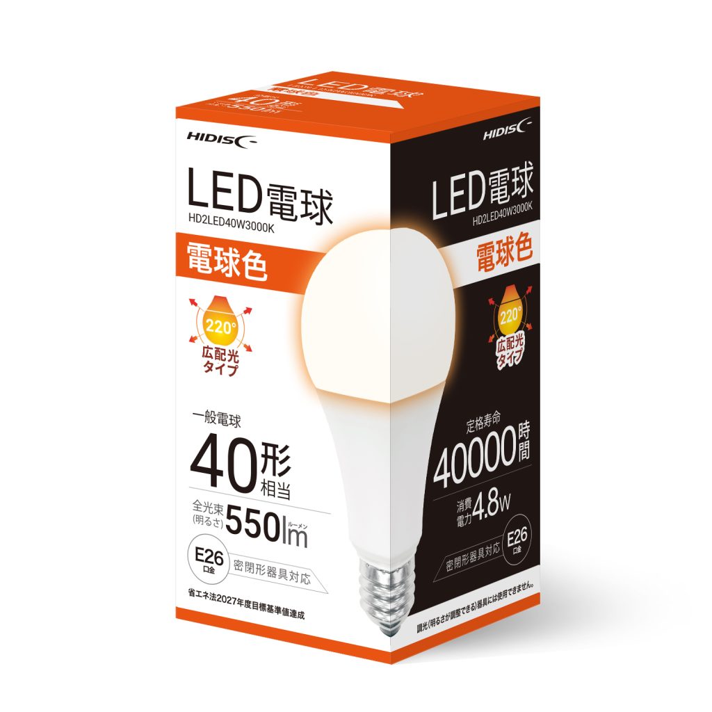 E26 LED照明・電球 LED製品 一般電球40形相当 HIDISC LED電球(一般電球40形相当) 昼白色 HD2LED40W5000K 商品名HIDISC LED電球(一般電球40形相当) 昼白色型番HD2LED40W5000KJANコード4984279820599 全光束 (ランプ単体の明るさ)一般電球40形相当 ≥485㏐電圧90-110V色温5000K外径60mm長さ110mm質量43g温度範囲約-20-40度定格寿命40000h口金E26配光角220°認証PSE認証品・密閉形器具対応材質アルミ、ポリカーボネート、PA オンラインストアで購入 関連ページ: HIDISC LED電球(一般電球40形相当) 昼光色 HD2LED40W6500K HIDISC LED電球(一般電球40形相当) 電球色 HD2LED40W3000K HIDISC LED電球(一般電球60形相当) 昼光色 HD2LED60W6500K HIDISC LED電球(一般電球60形相当) 昼白色 HD2LED60W5000K