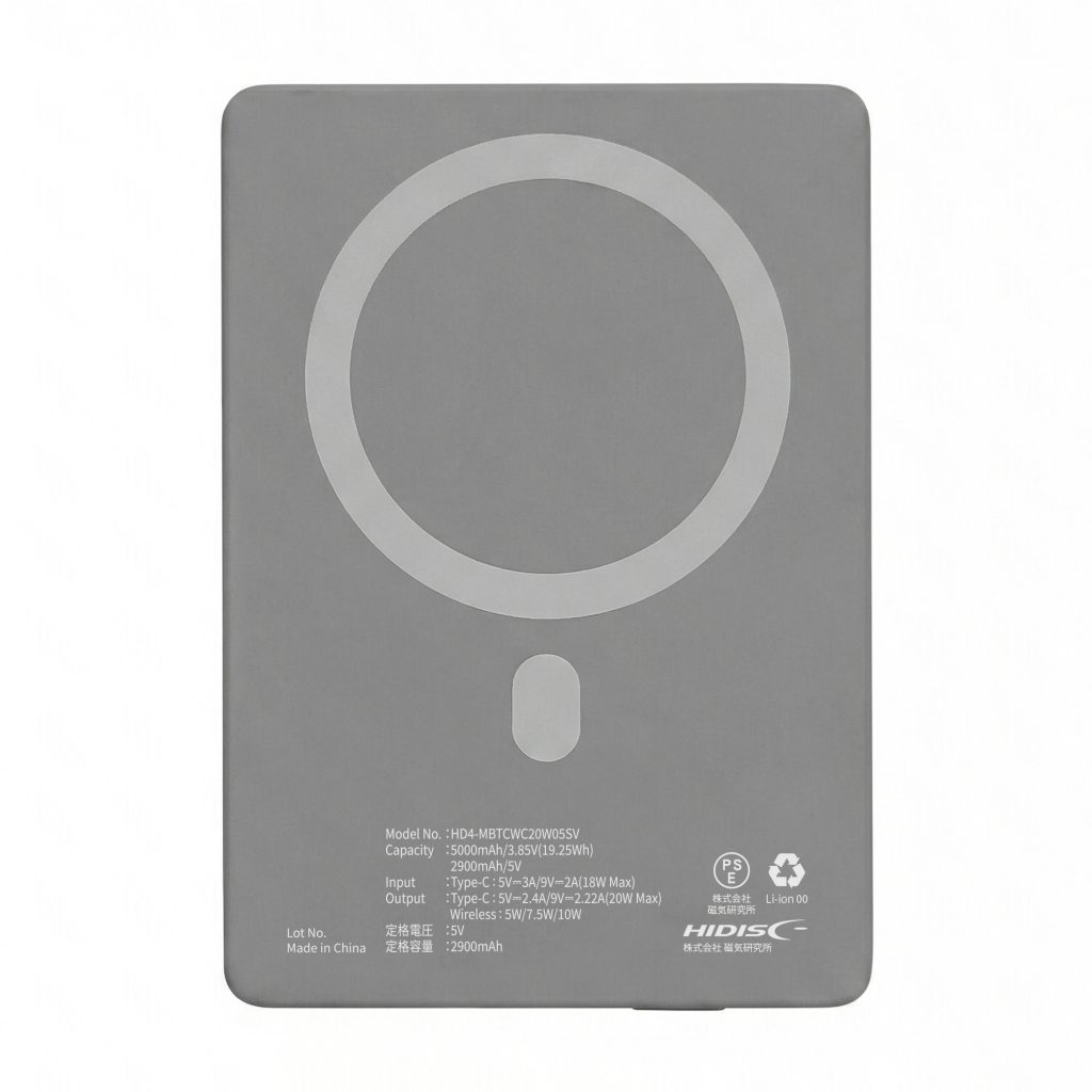 | 商品名 | HIDISC 超薄型厚さたった8.7mm ピタッと吸着マグネットワイヤレス充電 PD20W対応 モバイルバッテリー |