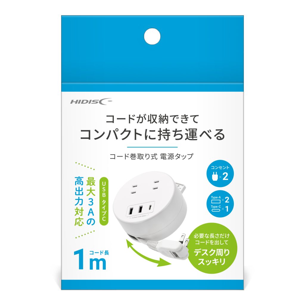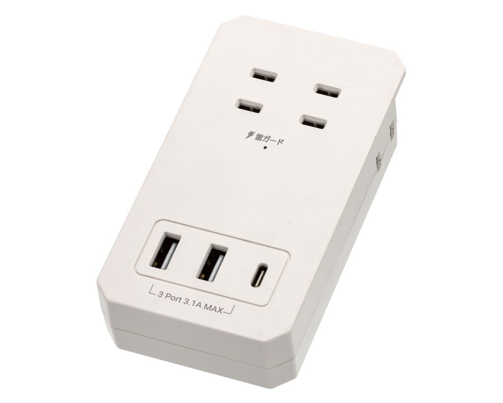HIDISC スタンド付きUSB電源タップ HD-AC4U2C1STWH