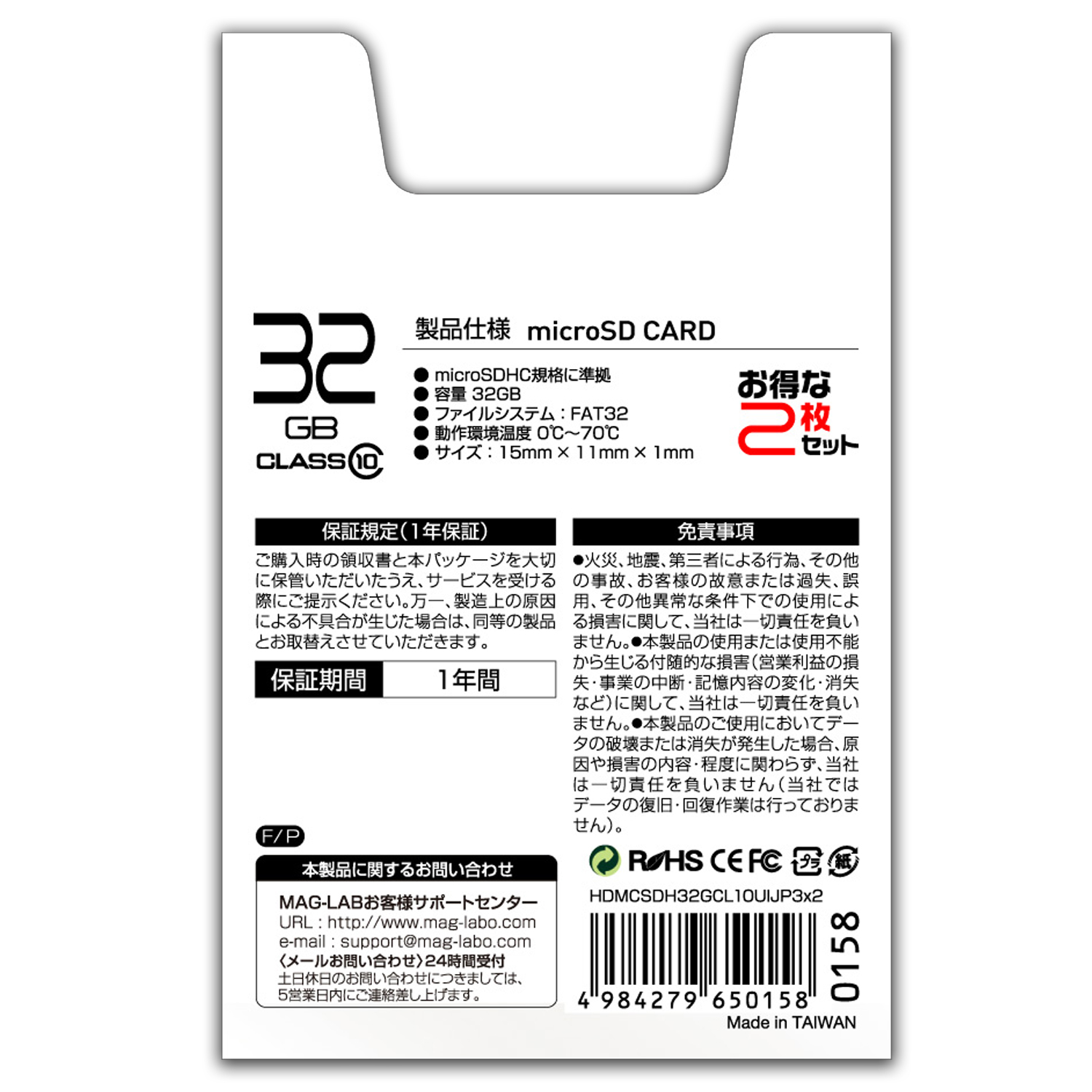 2枚組 microSDHC メモリーカード 2枚組 HIDISC microSDHCカード 32GB CLASS10 UHS-1対応“最大読込速度70MB/s” 商品詳細 型番 HDMCSDH32GCL10UIJP3X2 JANコード 4984279650158 規格 microSDHC 容量 32GB スピードクラス Class10 UHS-1 用途 タブレット、スマートフォン、カメラ、ゲーム機 ファイルシステム FAT32 サイズ 15mm×11mm×1mm メーカー保証 1年間 備考 オープンプライス オンラインストアで購入 関連ページ: 2枚組 HIDISC microSDHCカード 8GB CLASS10 UHS-1対応 “高速転送 Read70” 2枚組 HIDISC microSDHCカード 16GB CLASS10 UHS-1対応“最大読込速度70MB/s” KINGMAX microSDHCカード 16GB CLASS10 UHS-1対応“最大読込速度80MB/s” HIDISC MLC採用高耐久 microSDHCカード KIOXIAチップ採用 HDMCSDHC4GMLPJP3