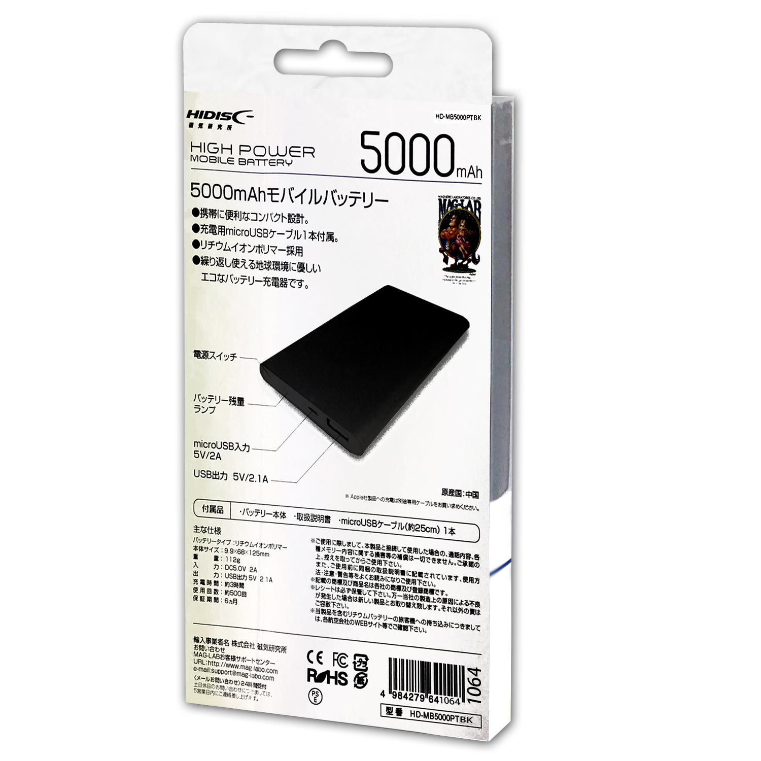 コンパクト(2000mAh~) スマホ関連 モバイルバッテリー HIDISC 大容量5000mAH モバイルバッテリー USB出力5V 2.1A (ブラック) 商品詳細 型番 HD-MB5000PTBK JANコード 4984279641064 容量 5000mAH 規格 リチウムイオンポリマー 重量 約112g サイズ 9.9×68×125mm 備考 入力:最大5V2.0A 出力:最大5V2.1A オンラインストアで購入 関連ページ: HIDISC 8000mAhソーラーチャージャー 2USB+高輝度LEDライト搭載 MBSC8000FTBK microUSBケーブル付き 乾電池式充電器 HD-AA4WHM HIDISC 大容量5000mAH モバイルバッテリー Type-C入力ポート搭載 USB出力5V 2.4A (ブラック) HIDISC 大容量5000mAH モバイルバッテリー Type-C入力ポート搭載 USB出力5V 2.4A (ホワイト)