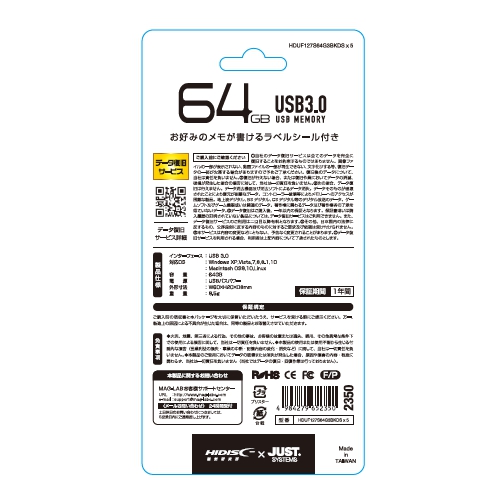5本セット USB3.0 USBフラッシュドライブ スライド式 HIDISC データ復旧サービス付USB3.0フラッシュメモリ 64GB 5本組 商品詳細 型番 HDUF127S64G3BKDSx5 JANコード 4984279652350 規格 USBタイプ:スライド式 容量 64GB インターフェイス USB3.0 (1.1/2.0対応) 対応OS Windows2000 , XP , Vista , 7 , 8 / Linuxカーネル2.4以上 / Mac OS カラー ブラック サイズ L54.2 x W19 x H8.6(mm) メーカー保証 1年間 重量 約8.7g 製品サポートに関する問い合わせ 関連ページ: HIDISC データ復旧サービス付USB3.0フラッシュメモリ 32GB 5本組 HIDISC USB 3.0 フラッシュドライブ 16GB スライド式 HIDISC USB 3.0 フラッシュドライブ 64GB スライド式 HIDISC USB 3.0 フラッシュドライブ 128GB スライド式 HDUF124S128G3